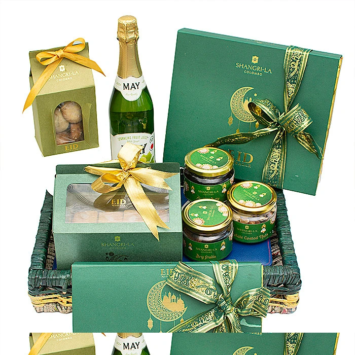 The Shangri-La Ramazan Eid Hamper includes a variety of items specially curated for the celebration of Eid. Please refer to the product description on the Kapruka webpage for detailed contents.