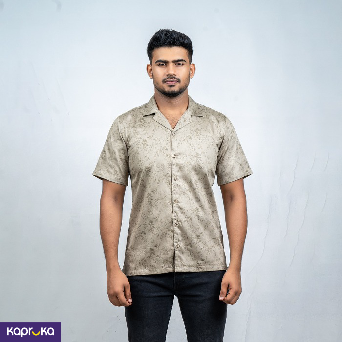 Discover the Signature Men’s Printed Cuban Collar Short Sleeve Shirt in a stylish beige color. Perfect for casual outings or relaxed gatherings, this shirt offers comfort and elegance.