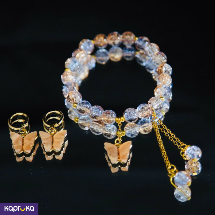 Brighten up your style with this Soft Orange and Soft Peach Bead Butterfly Jewelry Set, available at Kapruka. Perfect for any occasion, this handmade bracelet and earring duo adds a cheerful touch to your outfit.