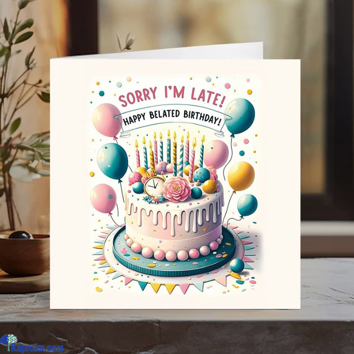 Note: This card includes a humorous "Happy Belated Birthday" message to brighten anyone's day.