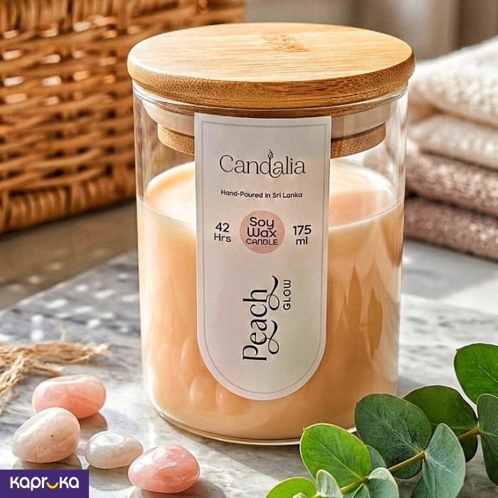 The Soy Peach Glow Glass Candle features a delightful peach fragrance, offering a sweet and fresh aroma to enhance the ambiance of any room.
