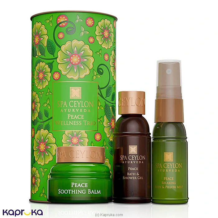 The Spa Ceylon Peace Wellness Trio includes a selection of wellness products designed to promote relaxation and peace. The specific items can vary, so please check the product description for exact details.