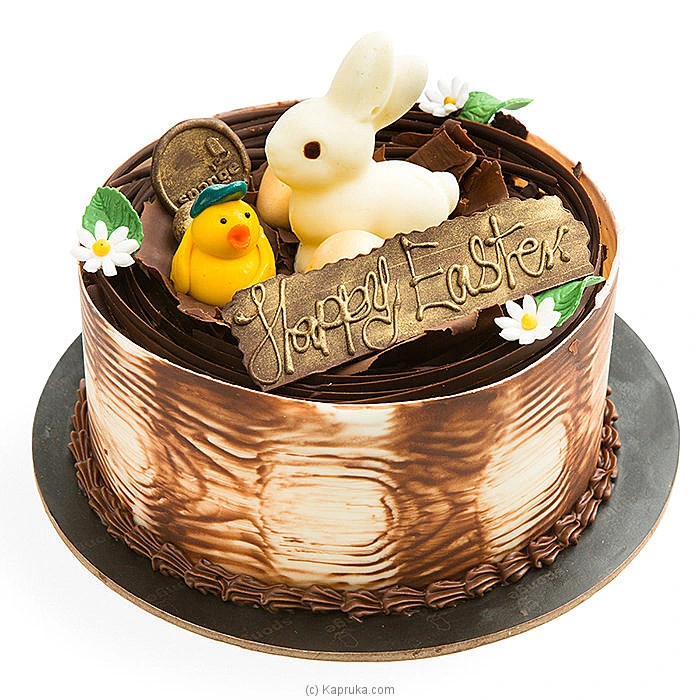 A beautifully crafted Chocolate Birds Nest Design with a Chocolate Easter Bunny and Easter Eggs, prepared on a delicious Nougat Gateaux Cake. Kapruka in collaboration with Sponge, brings a wide variety of delicious cakes to your doorstep.Available for delivery only after 6th of April