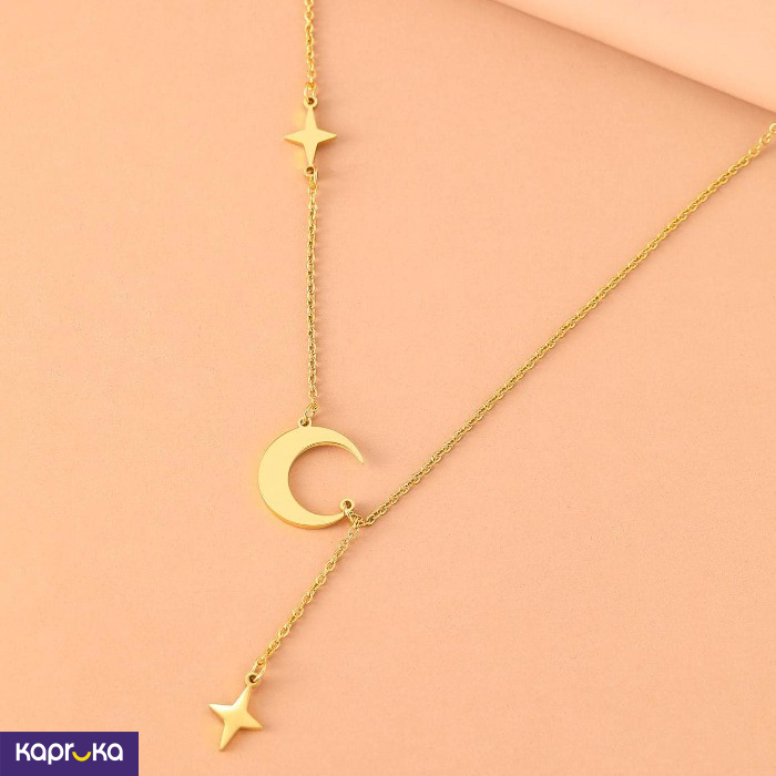 Enhance your jewelry collection with this stunning Stainless Steel Gold Plated Star and Moon Necklace. Crafted from high-quality stainless steel, this necklace features a beautiful gold plated finish that adds a touch of elegance to any outfit. The star and moon design is both trendy and versatile, making it a perfect accessory for everyday wear or special occasions.