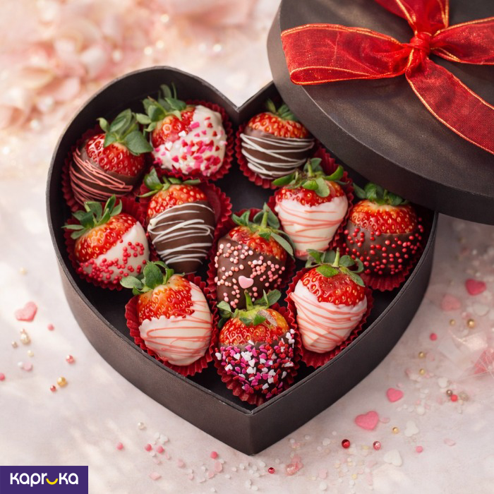 Make any moment special with the Strawberry Love Box from Sweet buds, available at Kapruka. This elegant heart-shaped box is filled with delicious, handcrafted chocolate-covered strawberries. It's a perfect treat to celebrate love in the sweetest way possible.