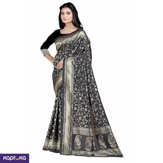 Sugathari Womens Banarasi Saree Pure Kanjivaram Silk Saree Black Color