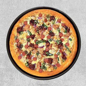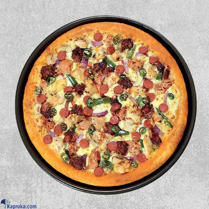 A combination of BBQ chicken, chicken bacon, chicken sausage & an all new roast chicken, accompanied with the freshest green pepper, mushroom, onion and green chilli, blanketed with delicious mozzarella cheese,