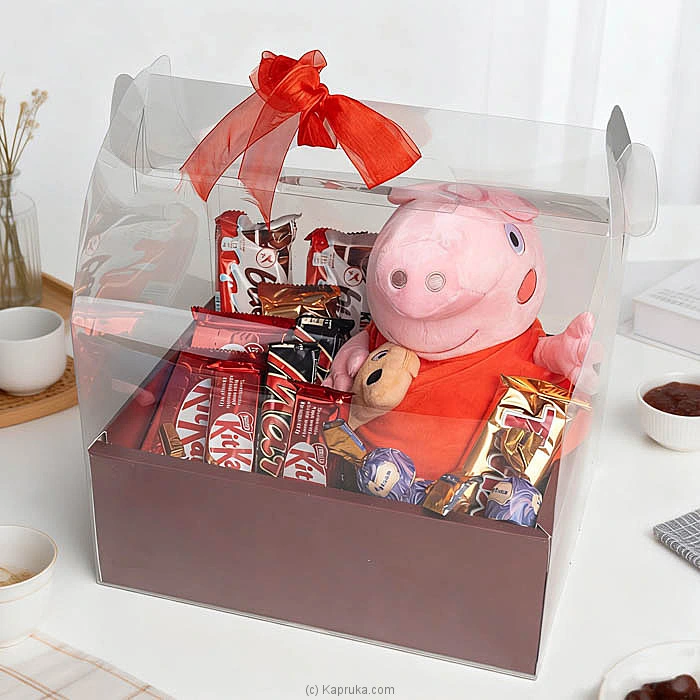 We`ve paired the iconic Peppa Pig plushie with a god-tier snack lineup (KitKat, Mars, and Kinder Bueno) all tucked into a sleek, clear carry-case. It`s not just a gift; it`s a whole mood.