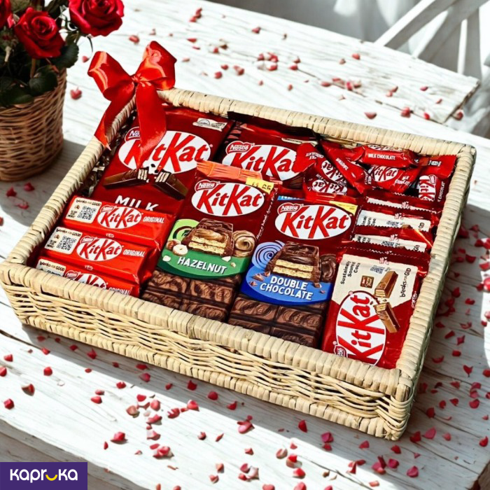 K Includes a variety of Kitkat flavors, such as milk chocolate and dark chocolate Comes in a beautifully designed gift box, perfect for romantic occasions