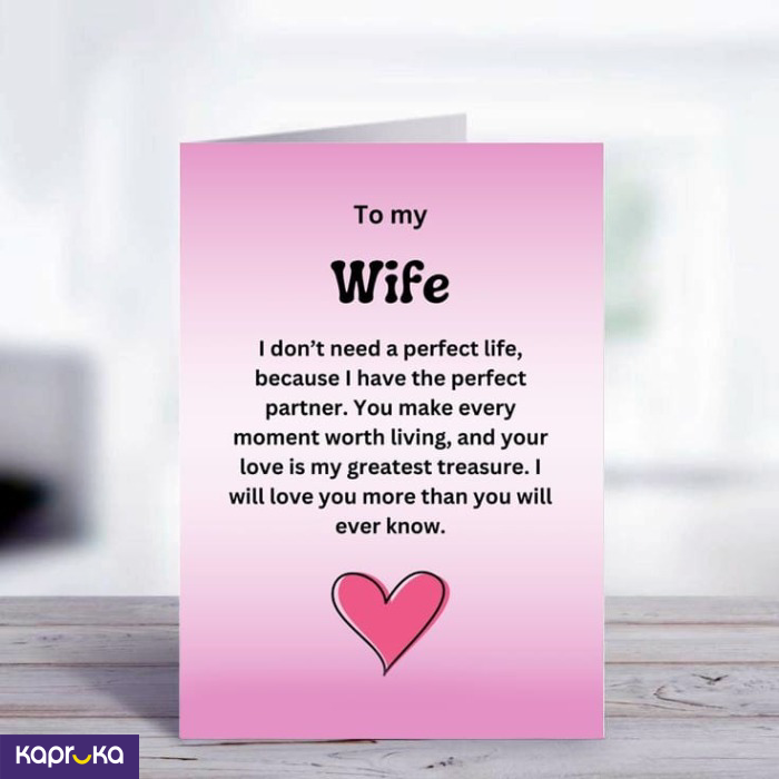 The `To My Wife` greeting card measures approximately 5x7 inches.
