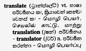 Sinhala meaning of word translate