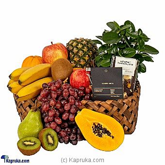 Send this deluxe hamper of fresh seasonal fruit, a green indoor pot plant, gourmet chocolate and luxury nuts. Beautifully presented in a gift basket this is makes an impressive gift. Perfect for a get well gift, hospital deliveries, new mum`s and sympathies. DELIVERY ONLY IN AUCKLAND