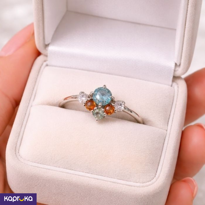 A delicate and elegant ring crafted from high-quality 925 sterling silver, featuring a beautiful arrangement of natural multi-color semi-precious gemstones. Designed to add a subtle yet vibrant touch to your everyday style.