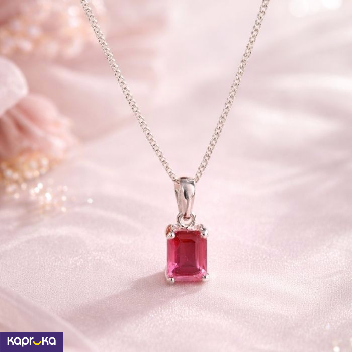 Product Name: Natural Rose Garnet Mounted Womens Box-Type Pendant with Chain