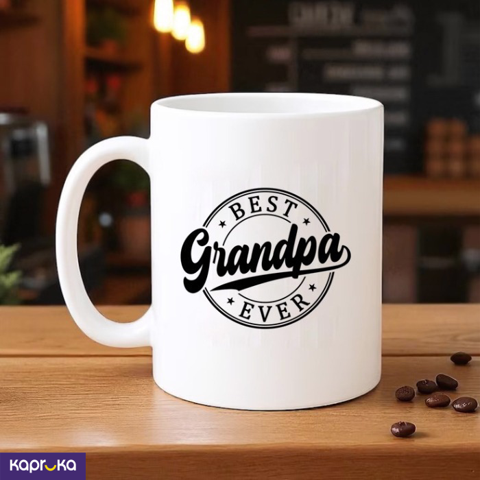 The `Best Grandpa Ever` mug is made from high-quality ceramic, ensuring durability and a smooth finish, suitable for daily use.