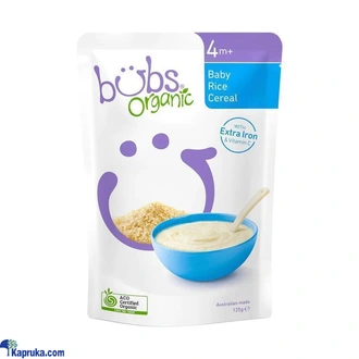 Made in Australian from pure organic rice and enoriched with vitamins and minerals ,it`s a first food for bubs 4 months+ that you can smile about each pouch makes12 delicious bowls with easy preparation.