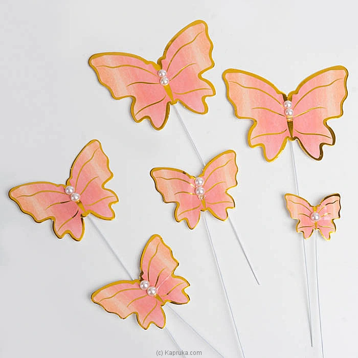 Add a touch of charm and elegance to your celebration with this beautiful butterfly-themed topper set. Designed with delicate peach butterflies outlined in gold. The soft pastel tones combined with intricate detailing create a graceful and eye-catching look, they can be easily arranged at various heights to create a fluttering, dynamic look on tiered cakes, cupcakes, or floral arrangements.