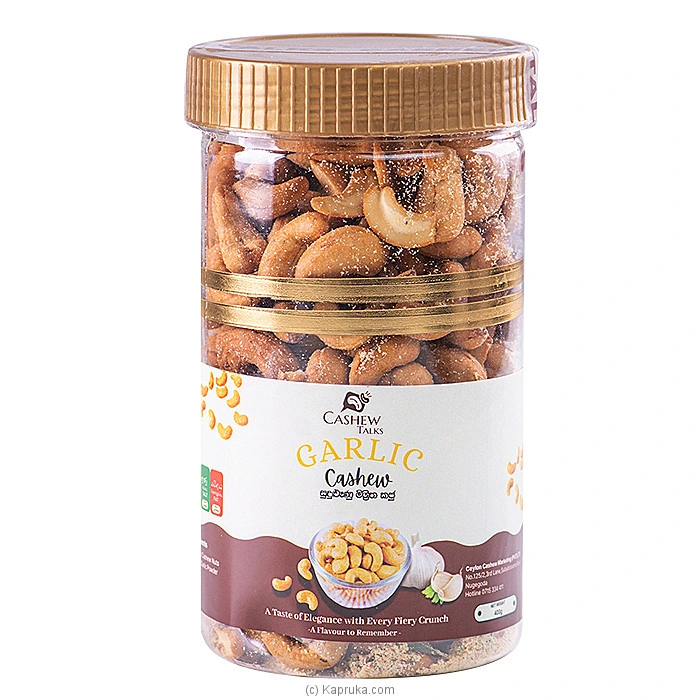 Discover the rich, savory taste of Cashew Talks Garlic Cashew, a top choice for snack lovers and garlic enthusiasts in Sri Lanka. Encased in a 400g bottle, these cashews offer an elegant crunch perfect for any occasion. Available now at Kapruka.