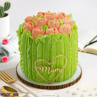 Celebrate the warmth of spring with the Citrus Blossom Delight, a stunning ribbon cake that combines elegance with vibrant flavor. Topped with beautiful, orange-hued tulip flowers and lush green accents, this cake embodies the essence of a sunlit citrus orchard. The creamy vanilla layers, wrapped in delicate ribbons and adorned with royal icing, are perfectly balanced with the zesty notes of citrus, bringing the taste of a fresh, blooming garden to your plate. Finished with an elegant Mother`s Day tag on top, this cake is the ideal centerpiece for honoring the special women in your life.