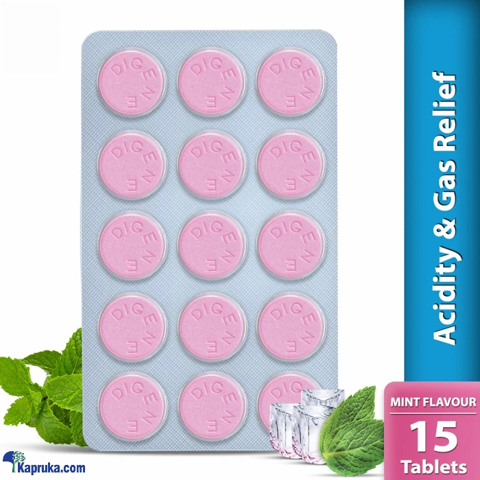 Digene Tablets Acidity & Gas Relief Mint flavour 15`S belongs to a group of medicines called antacids used to treat acidity, heartburn, indigestion, gastritis (inflammation of the stomach), and stomach upset. The stomach is usually protected from the acid by a mucous layer. In some cases, the mucous layer gets eroded due to excess acid production, which leads to complications like acidity and heartburn.