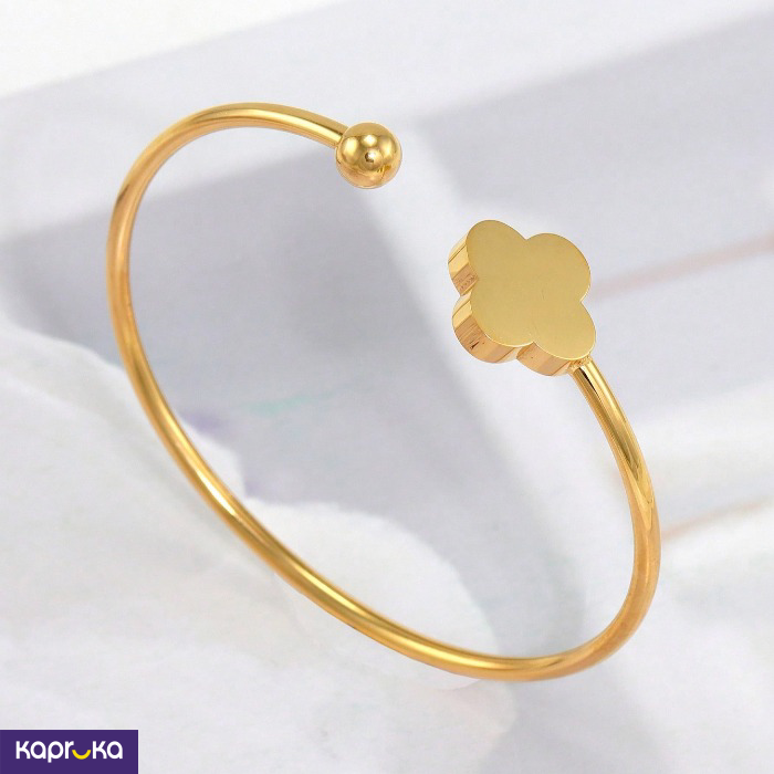 Gold Plated Stainless Steel Clover Open Bangle