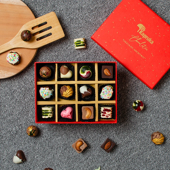 Enjoy the Kapruka Chocolate Assortment with 12 delightful pieces crafted for chocolate lovers. Presented in a stylish gift box, this collection offers a journey of delightful flavors and quality craftsmanship, perfect for any celebration or special moment.