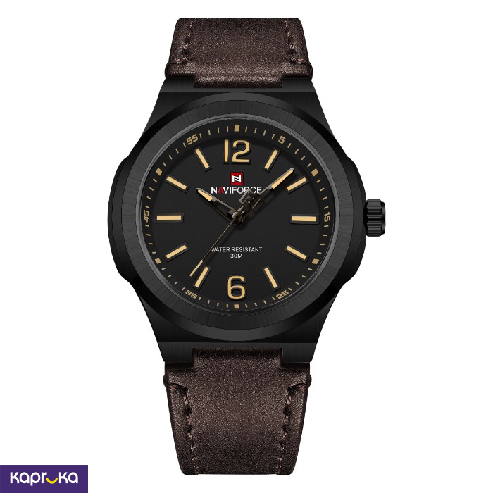 The Naviforce NF-9233 watch features a quartz movement, ensuring accurate timekeeping and low maintenance.