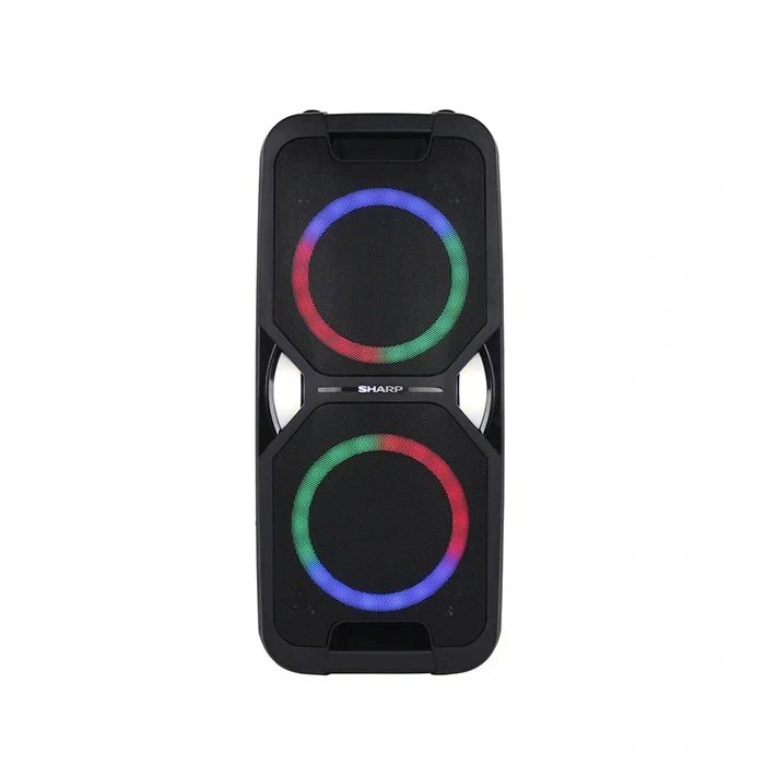 The Sharp Rechargeable Party Speaker can be operated using its built-in rechargeable battery or by plugging it directly into a power outlet.