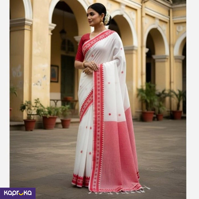 The Soft Cotton Manipuri Saree is made of high-quality soft cotton fabric, providing a comfortable and elegant look suitable for various occasions.