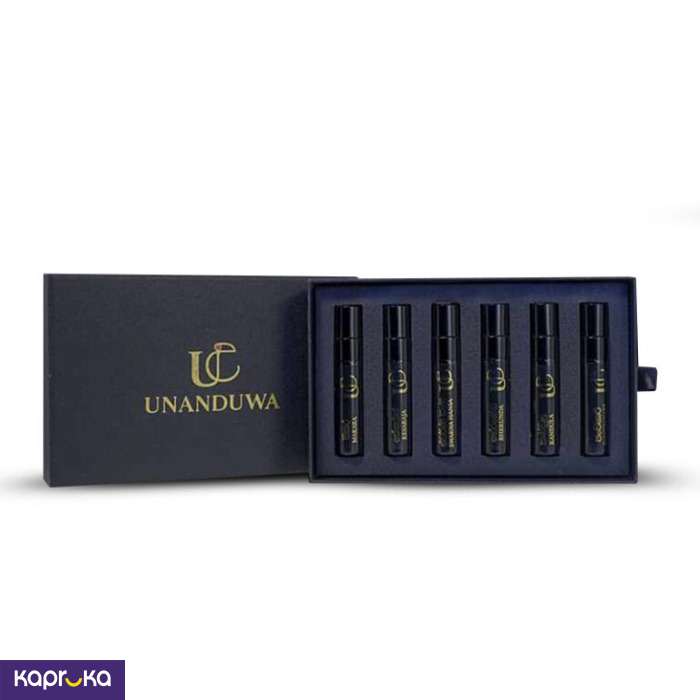 Discover the Unanduwa 5ml Legacy Collection Discovery Set, a special selection of unisex perfumes perfect for exploring a world of unique scents. Available at Kapruka in Sri Lanka, this set is ideal for personal enjoyment or as a luxury gift.