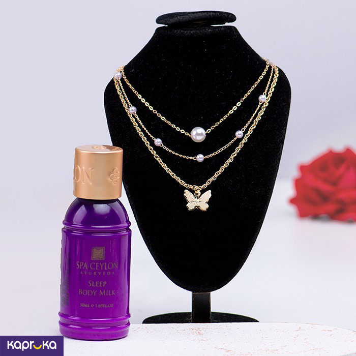 மென்மையானது ஆனால் வசீகரிக்கும், எதெரியல் பட்டாம்பூச்சி லேயர்ஸ் நெக்லஸ் எளிமை மற்றும் நேர்த்தியின் சரியான கலவையாகும். இந்த 3-அடுக்கு நெக்லஸ் அம்சங்கள்: தூய வெள்ளை மணிகளின் அடுக்கு, காலத்தால் அழியாத நுட்பத்தை வெளிப்படுத்துகிறது. நேர்த்தியான பட்டாம்பூச்சி பதக்கத்தால் அலங்கரிக்கப்பட்ட ஒரு அடுக்கு, கருணை மற்றும் மாற்றத்தைக் குறிக்கிறது. கூடுதல் வசீகரத்திற்காக இணக்கமான வடிவத்தில் அமைக்கப்பட்ட மின்னும் மணிகளின் அடுக்கு. துல்லியம் மற்றும் கவனிப்புடன் வடிவமைக்கப்பட்ட இந்த நெக்லஸ் இலகுரக மற்றும் பல்துறை திறன் கொண்டது, இது சாதாரண பயணங்கள், சிறப்பு நிகழ்வுகள் அல்லது சிந்தனைமிக்க பரிசாக ஏற்றதாக அமைகிறது. எதெரியல் பட்டாம்பூச்சி லேயர்ஸ் நெக்லஸ் அதன் மென்மையான வசீகரம் மற்றும் குறைத்து மதிப்பிடப்பட்ட அழகுடன் எந்தவொரு ஆடையையும் மேம்படுத்துகிறது. பரிசுப் பொதியில் எதெரியல் பட்டாம்பூச்சி லேயர்ஸ் நெக்லஸ் 1pc ஸ்பா சிலோன் ஸ்லீப் பாடி மில்க் 50 மில்லி பாட்டில் அடங்கும்.