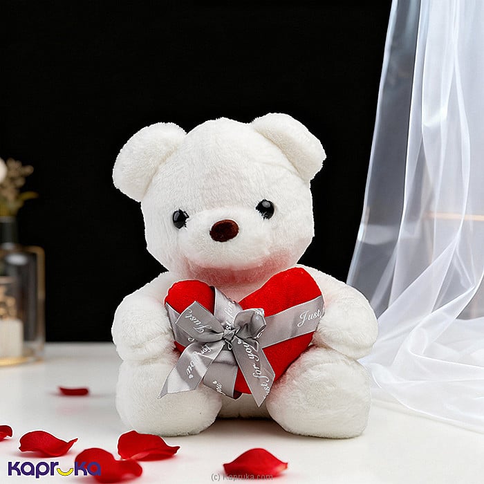 The Sweet Embrace White Teddy Bear with Heart is a perfect way to show love and care. Standing at 15 inches, this adorable teddy has soft white fur and holds a bright red heart tied with a ribbon. Ideal for any special occasion, it brings joy to kids, teens, and adults alike. Size: 15 inches, perfect for hugging and display Material: Made from premium ultra-soft plush fabric Design: Fluffy white fur with a charming red heart and ribbon Perfect For: Valentine?s Day, anniversaries, birthdays, and romantic surprises Usage: Great for cuddles, gifting, or as a decoration in bedrooms Order this lovely teddy bear from Kapruka today and spread love all around Sri Lanka.